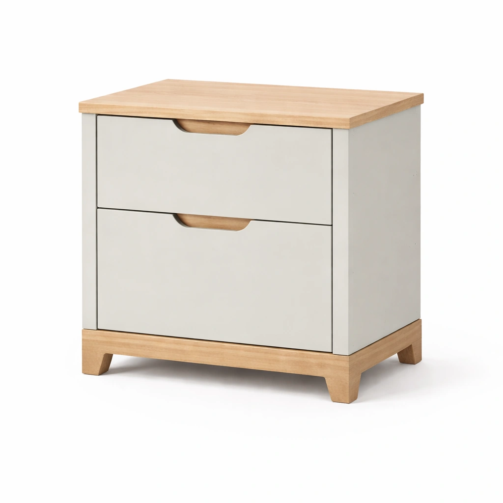 Mesita de noche de mdf y madera maciza con cajones