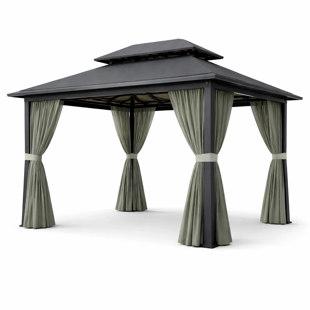 Material del producto: Estructura de aluminio, techo de acero, cortinas de poliéster.